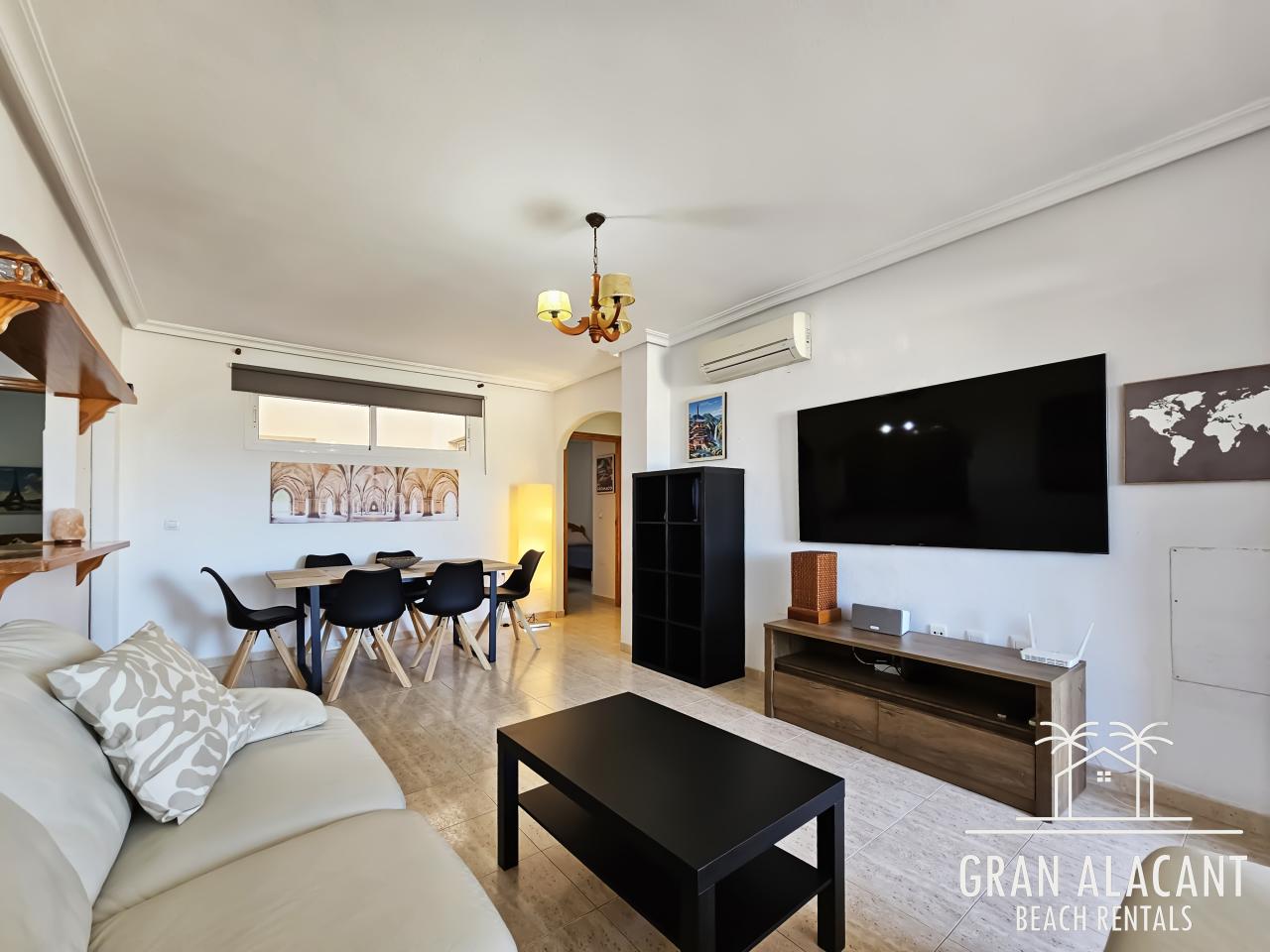 Descubre tu refugio en Gran Alacant! Encantador apartamento adosado en primera planta en Novamar 3, con terraza privada y acceso a dos piscinas comunitarias. Perfecto para vacaciones familiares. El apartamento dispone de tres acogedoras habitaciones: dos con cama matrimonial y una con dos camas individuales. Una de las habitaciones con cama doble es de tamaño más pequeño, pero igualmente cómoda para 1 o 2 personas. Además, cuenta con un baño com...